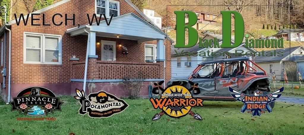 The Black Diamond ATV Lodge in Welch, WV is the perfect place to stage your next Hatfield McCoy trails adventure. We are pet friendly all one level only Three steps to climb to enter home. We are close to three Hatfield trails and several outlaws lots of local places to eat close by plus we have a full kitchen at your disposal Consider this your second home as you will have the whole house just for you. On the main floor there are 3 bedrooms, living room, dining, kitchen, laundry, and bath. The whole house plus garage is yours to use.